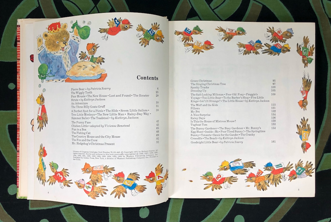 Important note regarding finding this story today: “Pierre Bear” can be found in “Richard Scarry’s Best Story Book Ever” the third printing, copyright 1968. Unfortunately, newer versions of the compilation leave out this classic story. “Pierre Bear” should be listed on the Contents page; the story begins on page 39.